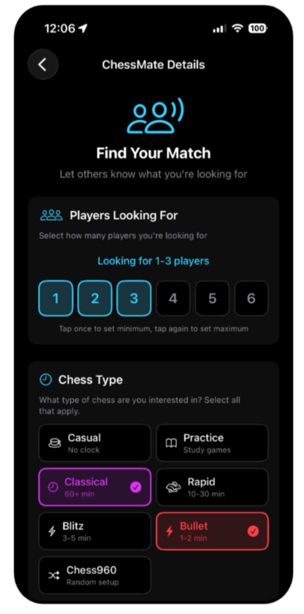Explore a live map to find places where chess is being played around you. View details like skill level, equipment available, and what’s happening at each location. See which spots are active and jump into games nearby. Quickly get directions and start playing.